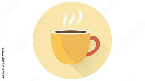 © R&R Studio, Obraz premium A simple illustration of a steaming yellow coffee cup on a circular background.