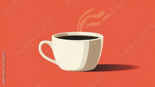 © BozStock, Obraz premium A simple illustration of a white coffee cup with steam rising.