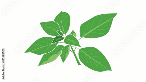 © Suradet Rakha, Fototapeta premium A simple illustration of holy basil, with only one in the center, symbolizing the art. Dynamic on a clean white background.