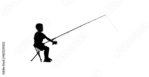 © Raju, Obraz premium A simple, impactful silhouette of a boy fishing from a small, portable chair.