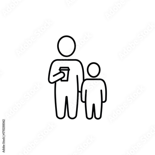 © adobestockimagesai, Fototapeta premium A simple line art icon depicting an adult figure holding a cup and standing next to a smaller child figure.