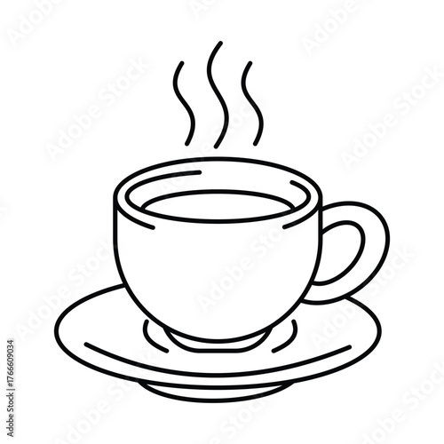 © Pabitro, Obraz premium A simple line drawing depicts a steaming cup of hot beverage