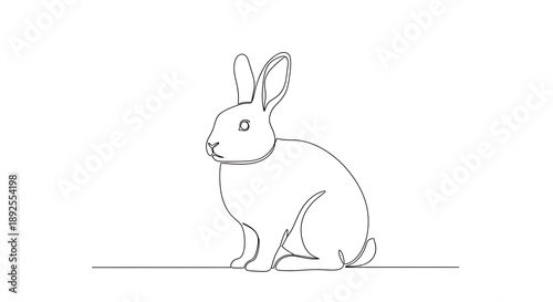 © Nurul Amin, Obraz premium A simple line drawing of a rabbit sitting on a flat surface looking to the left on a white background
