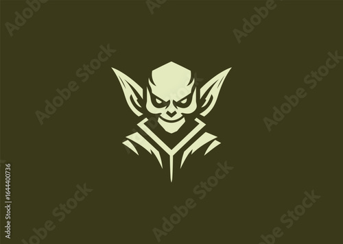 Obraz premium A simple minimalist goblin silhouette logo, merging whimsical fantasy with clean, modern design.