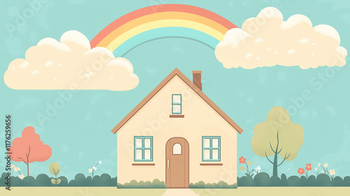 Naklejka premium A simple pastel illustration of a small cozy home with a garden