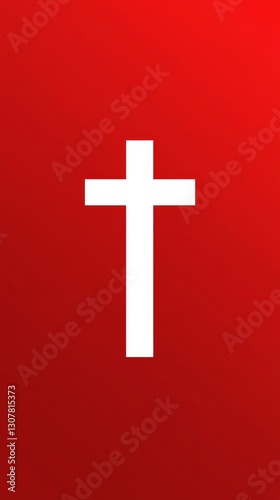 © kkkiim graphic, Obraz premium a simple red and white cross symbol, elegantly positioned against a solid background