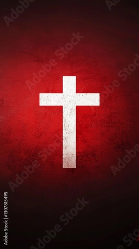 © kkkiim graphic, Obraz premium a simple red and white cross symbol, elegantly positioned against a solid background