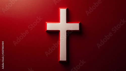 © kkkiim graphic, Obraz premium a simple red and white cross symbol, elegantly positioned against a solid background.