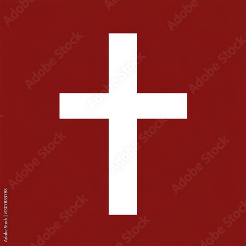 Fototapeta premium a simple red and white cross symbol, elegantly positioned against a solid background.