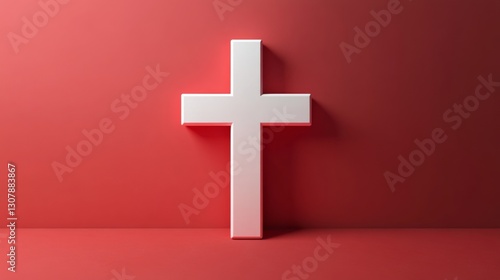 Obraz premium a simple red and white cross symbol, elegantly positioned against a solid...