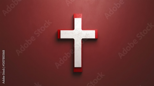 © kkkiim graphic, Obraz premium a simple red and white cross symbol, elegantly positioned against a solid background.