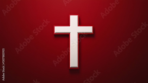 Fototapeta premium a simple red and white cross symbol, elegantly positioned against a solid background.