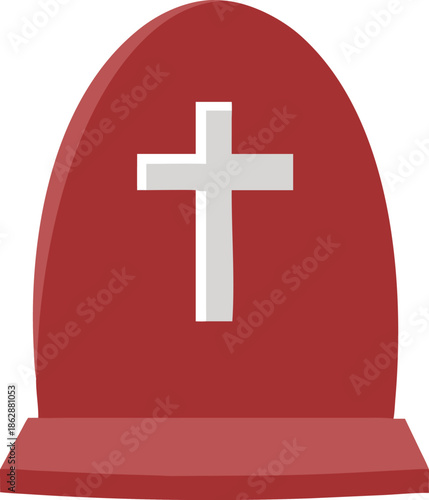 Obraz premium A simple red tombstone with a white cross representing death and remembrance
