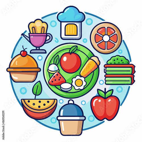 Fototapeta premium A simple vector icon illustration depicting the category of Food items at center for a website isolated white background