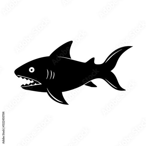 Obraz premium a simple vector illustration of a fierce shark with sharp teeth and a black...