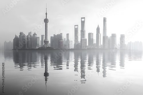 Fototapeta premium A simple vector illustration of the city skyline is represented by simple smooth lines, with clean lines and a minimalistic style, perfect for lifestyle or technology