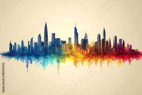 Naklejka premium A simple vector illustration of the city skyline is represented by simple smooth lines, with clean lines and a minimalistic style, perfect for lifestyle or technology