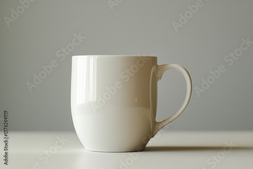 © Agent Neptunus, Fototapeta premium A simple white ceramic mug sits on a bright white surface