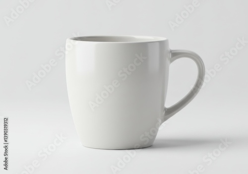 Fototapeta premium A simple white ceramic mug with a handle isolated on white background