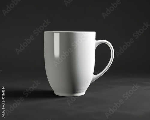 © pham, Obraz premium A simple white coffee cup is placed on top of a wooden table