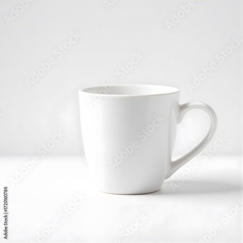 Fototapeta premium A Simple White Coffee Mug Sitting On A White Surface With A Soft Blurred Background