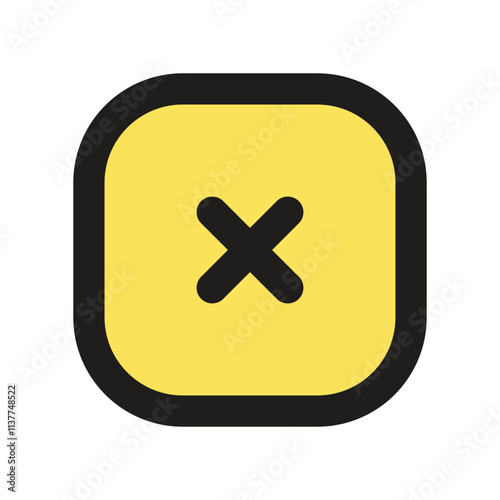 © Jagad Digital, Fototapeta premium A simple yellow square button featuring a black X signifying closure or cancellation.