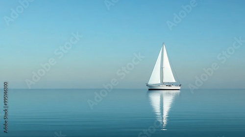 Obraz premium A simple yet striking image of a lone sailboat gliding across a tranquil sea,...