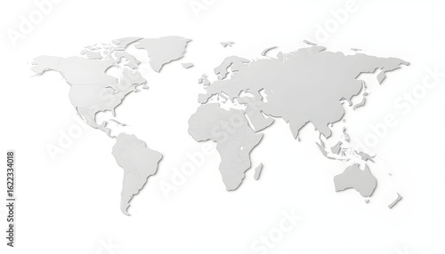 Fototapeta premium A simplified, flat, grey-toned illustration of the world map, isolated on white.