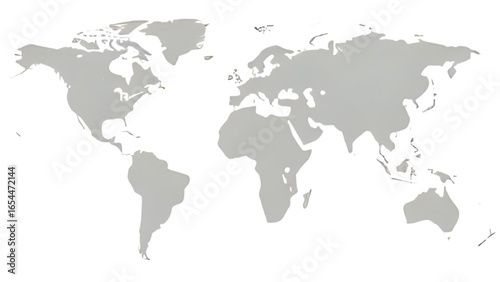 © Shelvina, Naklejka premium A simplified, grey world map depicting the continents and oceans, isolated on a white background.