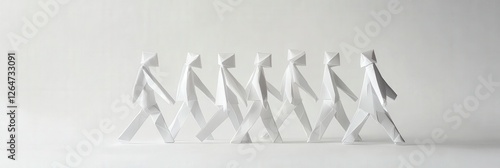 Fototapeta premium A simplistic yet powerful depiction of paper figures walking together,...