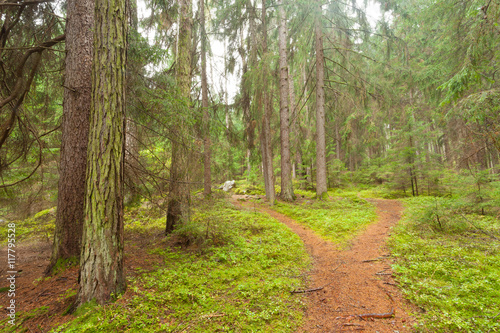 Fototapeta premium A single alpine path splits in two different directions. It's an