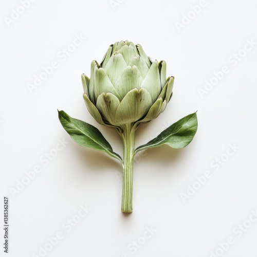 Obraz premium A single artichoke in close-up, isolated on a white background. Featuring...