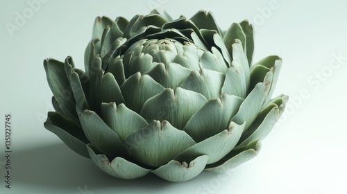 © Jersco, Fototapeta premium A single artichoke with tightly packed leaves, isolated on a white background