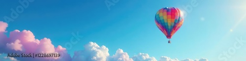 Obraz premium A single balloon rises high into the clear blue sky with a trail of colorful...