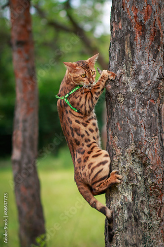 © Maria Shchipakina, Fototapeta premium A single bengal cat in natural surroundings