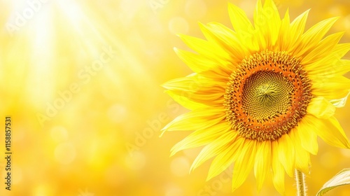 Fototapeta premium A single bright yellow sunflower on a soft goldenrod background, detailed...