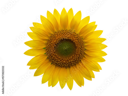 © Creative Design, Fototapeta premium A single bright yellow sunflower with a detailed center isolated on transparent background