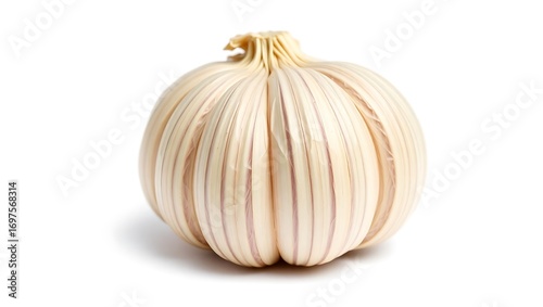 © Sampath, Obraz premium A single bulb of garlic on a white background shot