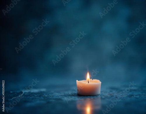 © David Angkawijaya, Fototapeta premium a single candle is lighten up on a dark surface