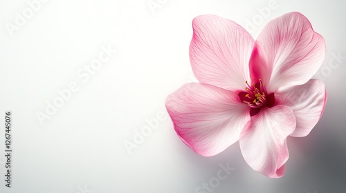 © nitiroj, Obraz premium a single cherry blossom flower, delicate and minimalistic, hyperdetailed realism, isolated on white background