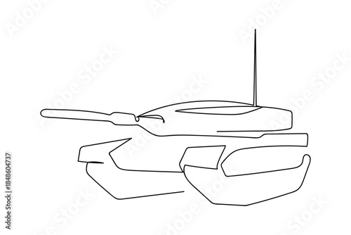 © Proongnee, Obraz premium A single, continuous line representing a minimalist tank. Single line art design Editable stroke.