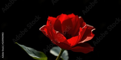 Fototapeta premium A single crimson poppy blooms against a dark background, showcasing its...