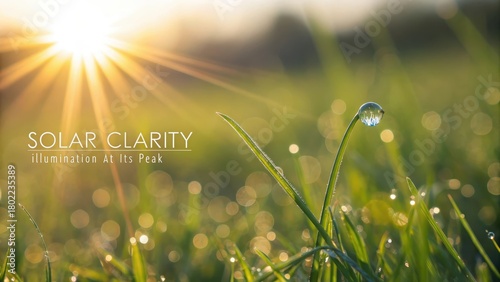 Fototapeta premium A Single Dewdrop Reflecting Sunlight on a Blade of Grass in a Sun-Drenched...