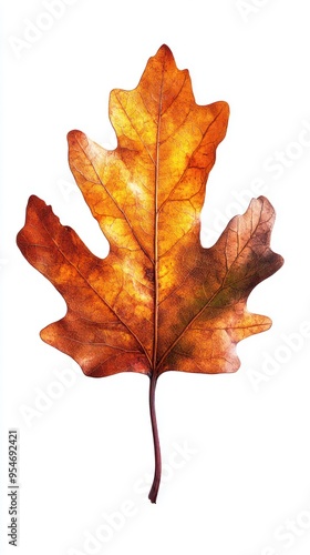 © RizArt, Obraz premium A Single Dried Leaf with Intricate Veins in Autumn Hues