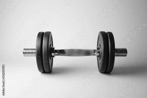 Fototapeta premium A single dumbbell resting on a smooth white surface