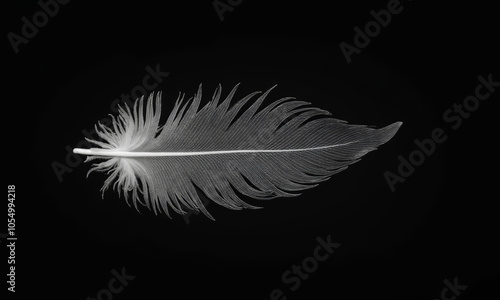 © Sense, Obraz premium A Single Feather on a Dark Background