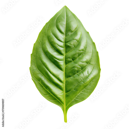 Obraz premium A single fresh green basil leaf isolated on white background