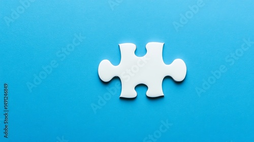 © BozStock, Obraz premium A single, glossy blue puzzle piece rests on a solid blue background.