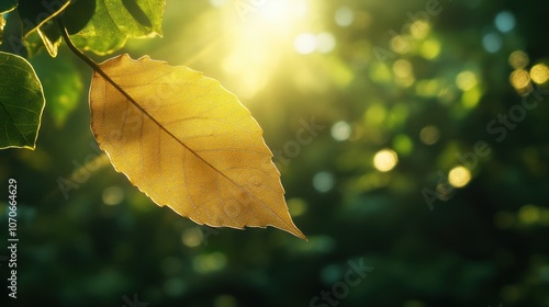 Obraz premium A Single Golden Leaf in Sunlight