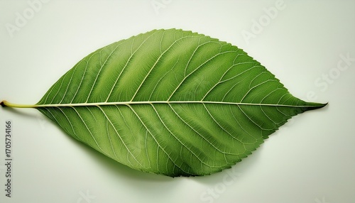 Fototapeta premium A Single Green Leaf With Visible Veins And Texture Against A Plain Background